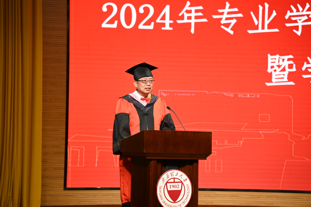 毕业典礼在庄严的国歌声中拉开帷幕。栗继祖代表学院两千余名师生,向圆满完成学业的2024届全体毕业生,表示热烈的祝贺!向为同学们成长成才付出辛勤汗水的全体教职员工,表示衷心的感谢!他寄语走向新征程的同学们三点期望:第一,终生学习,希望同学们拥抱知识的海洋,不断汲取新知、磨砺技能,成为行业的佼佼者,实现自己的人生价值;第二,学以致用,将所学知识应用于实际工作之中,不断创新、不断进步,以实际行动证明知识的力量不仅仅在于积累,更在于运用;第三,心怀感恩,希望同学们怀着感恩的心回馈社会,铭记师长的教诲和同窗的友情,勇敢地迈向未来,成为温暖世界的人。毕业绝不仅仅是简单的道别,更是走向广阔天地的起点。希望全体毕业生能够用更加坚定的勇气与信心创造更美好的未来。