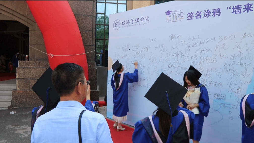 典礼上的串场节目精彩纷呈,点燃了全场情感的共鸣。21级MPAcc陈冠宇独唱《那些年》,将青春的记忆与未来的憧憬交织在一起;辅导员张杰东独唱《一路有你》,为即将各奔东西的同学们送上了一份特别的告别礼物;23级MEM吴海文独唱《再见》,使得同学们眼含热泪,掌声经久不息;22级MBA王金梦、张艺扬的舞蹈《Never say Never》,激励着毕业生们勇敢面对挑战,释放自己的无限可能。