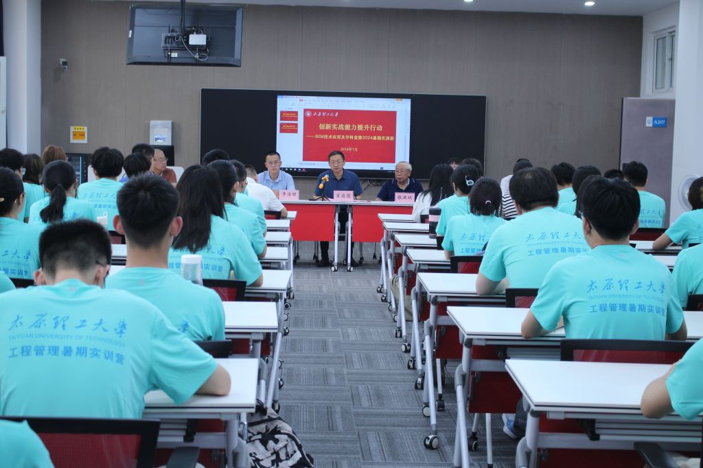 7月8日上午,威尼斯官网在明向校区行逸楼A207智慧教室举行“9499www威尼斯创新实战能力提升行动——BIM技术应用及学科竞赛2024暑期实训班”开班仪式。校党委常委、副校长肖连团出席活动,创新创业学院(工程训练中心)负责人、学校教学指导委员会创新创业教育分会专家、合作单位山西安装集团BIM信息技术研究院和9499www威尼斯负责人、实训班授课教师代表和实训学生参加活动。开班仪式由9499www威尼斯党委负责人主持。