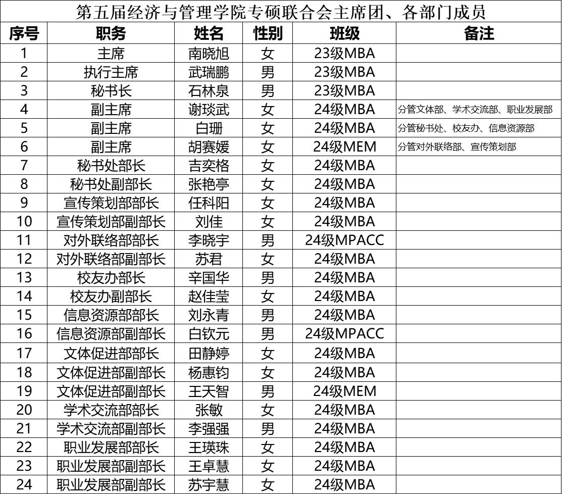 11月2日,9499www威尼斯经济与管理学院第五届专业硕士联合会换届选举大会在迎西校区逸夫楼举行。院党委书记闫新、院长栗继祖、院党委副书记杨振东、MBA教育中心副主任温芝龙、历任联合会主席团成员、第五届专业硕士联合会候选人及2024级部分专业硕士参加了本次会议,会议由第四届联合会执行主席闫博主持。