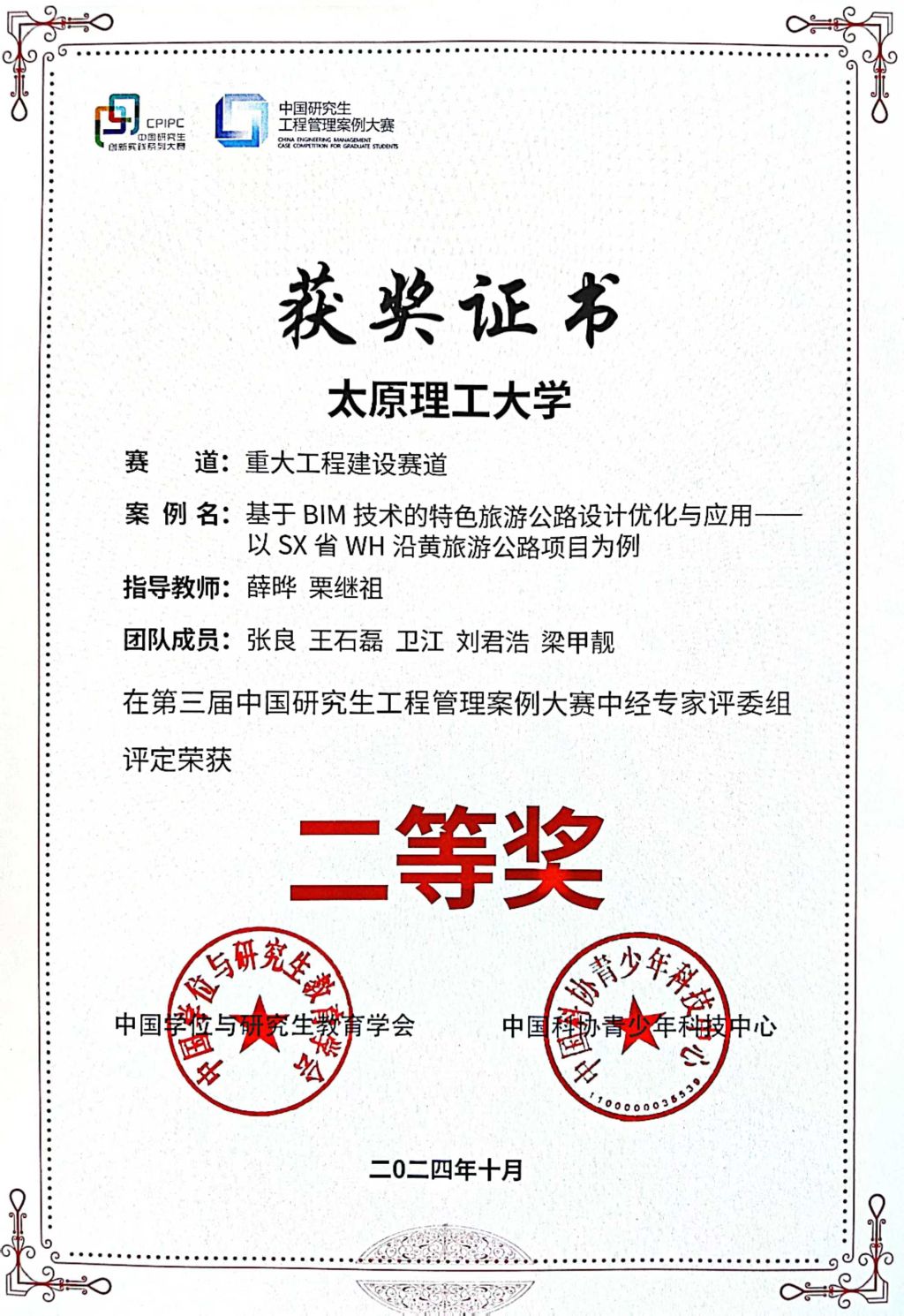 经过激烈的角逐,由我院栗继祖院长、薛晔教授指导,张良、刘君浩、梁甲靓同学共同组成的团队,荣获全国赛二等奖的佳绩。