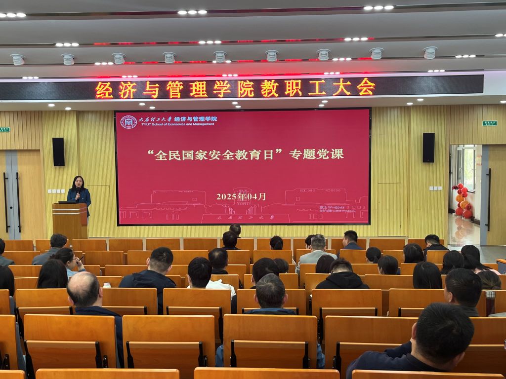 4月15日是全民国家安全教育日,经济与管理学院在学院报告厅举办了2025年全民国家安全教育日专题党课,闫新书记主持并做了题为“筑牢保密防线,守护国家安全”的专题党课,学院全体教师参加。