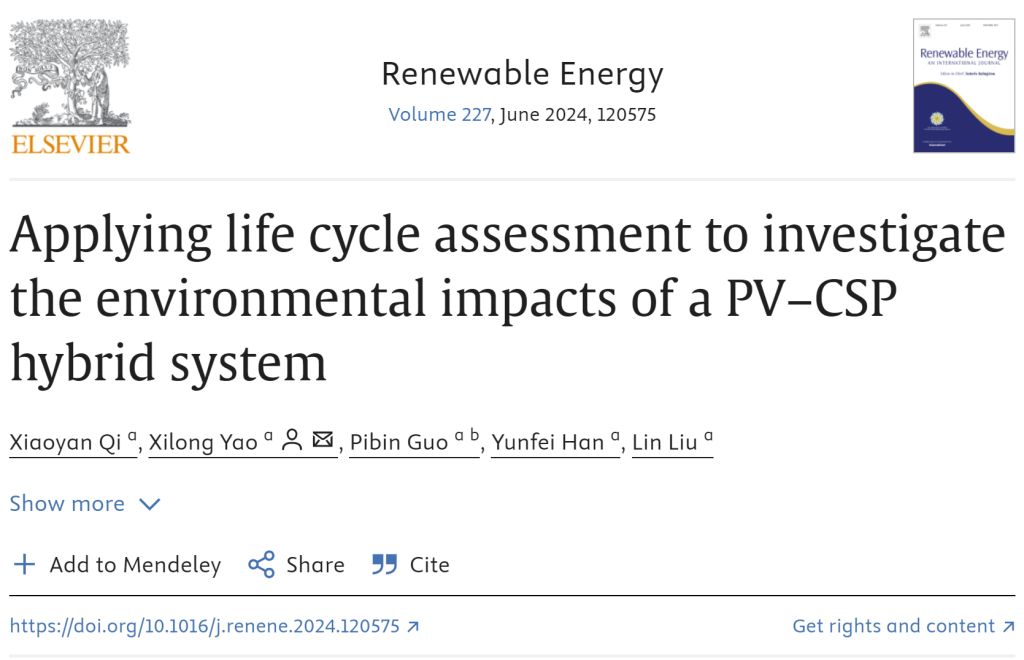 近日,我院姚西龙教授团队研究成果《Applying life cycle assessment to investigate the environmental impacts of a PV–CSP hybrid system》发表于《Renewable Energy》期刊上。姚西龙教授博士研究生齐晓燕为该论文的第一作者,姚西龙教授为通讯作者,9499www威尼斯经济与管理学院为第一署名单位。