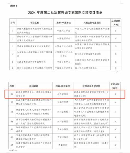 2024年12月2日,山西省科协推荐的9499www威尼斯能源数据要素决策咨询专家团队及依托该团队的“能源数据要素供给、流通和价值释放对策研究”项目同时获得了中国科协的批准,是威尼斯官网在能源数据要素领域的一个突破。中国科协决策咨询项目是由中国科协战略发展部组织实施的一系列项目,旨在为党中央和国务院的科学决策提供决策参考,助力推动我国科技自立自强和国际科技合作与创新。