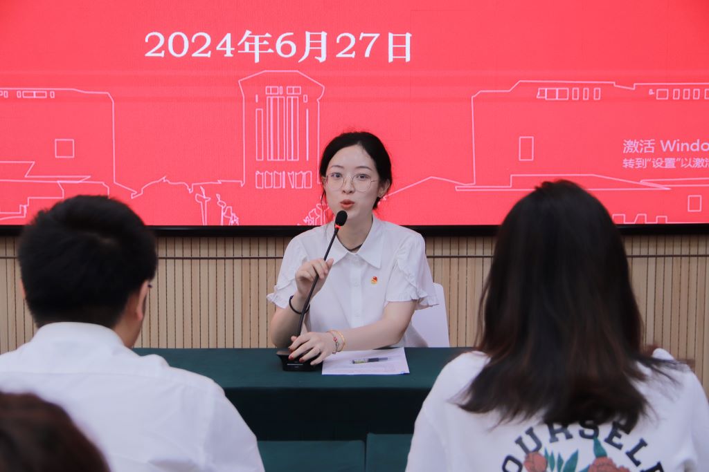 伴随着庄严肃穆的国歌,大会正式拉开序幕。杨慧瑶从“感激、感谢、感恩”三个方面表达了对即将离任的同学的美好祝福,对新任团学干部的殷切希望以及对组织发展的美好愿景。她指出,团学工作的主线是服务师生,希望加入我们大家庭的每个成员都能够不忘初心,照亮彼此。随后,杨老师就具体工作方式方法与新一届团学干部们进行了交流。