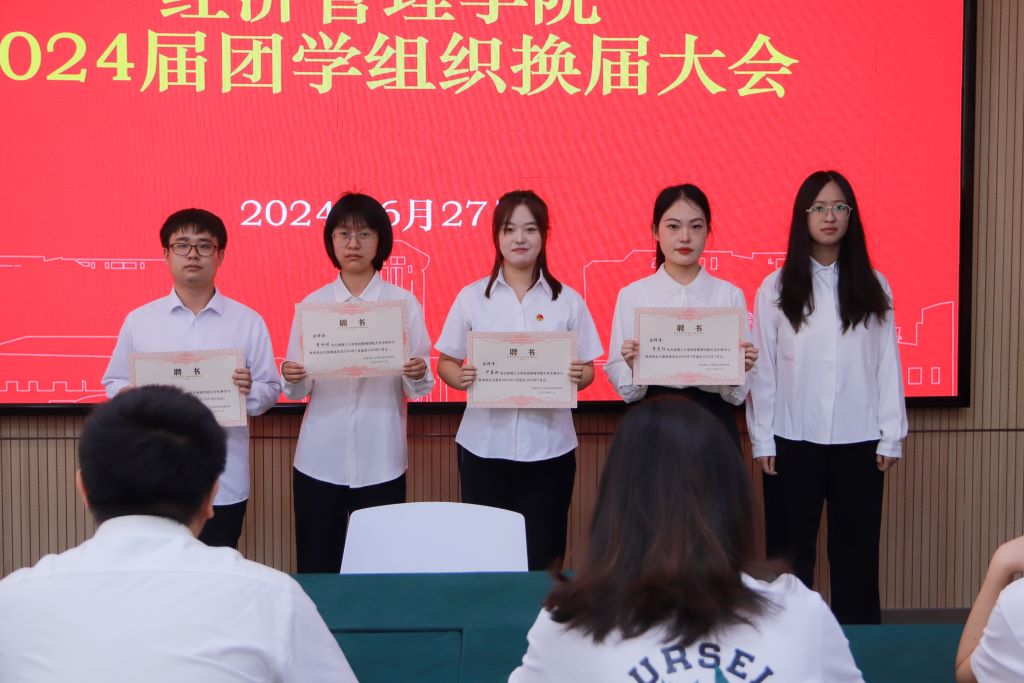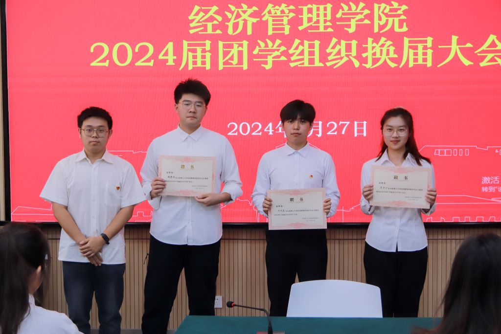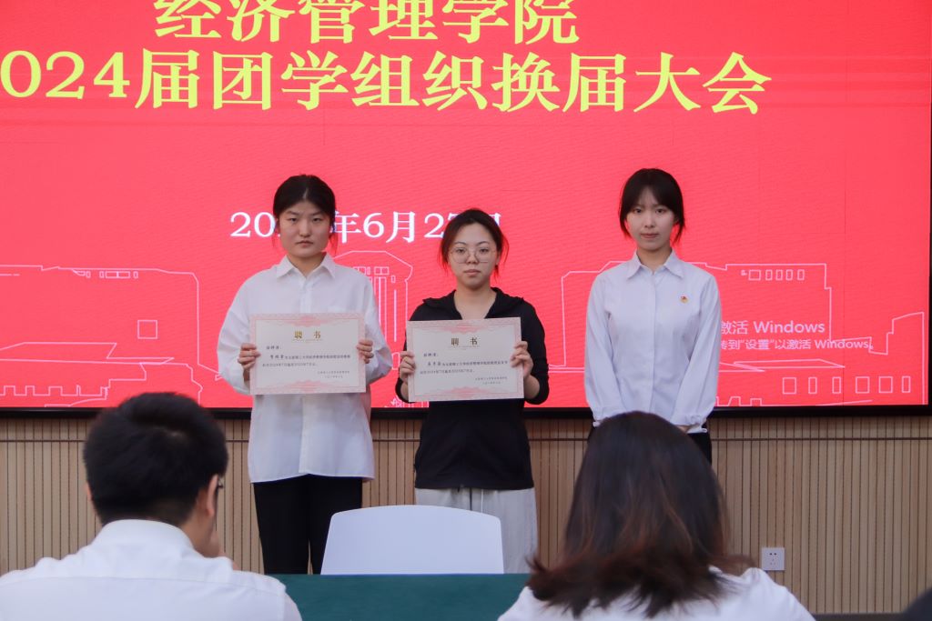 大会第三项,举行2024届团学干部就任仪式。2024届学生会主席亓文龙和研究生会主席陈浩昕作为代表发言,他们表示团学组织是学生成长成才的舞台,将团结同学们以饱满的热情、昂扬的斗志、务实的作风,为9499www威尼斯的发展贡献自己的力量!随后,由2023届主席团与部长团成员为新一届主席团、部长团成员颁发聘书。