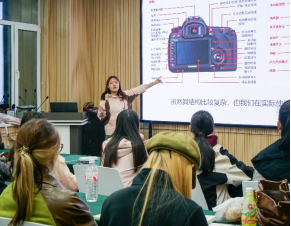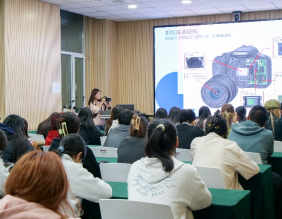 此次培训由学院新媒体中心负责人鲍欣担任主讲,她以生动的例子和形象的比喻,深入浅出地讲解了摄影基础,包括构图原则和光线运用。鲍欣还分享了实用的摄影技巧,如捕捉动态瞬间和后期处理提升照片质量,鼓励学生们多拍照、多实践,以此来提高自己的摄影技能。