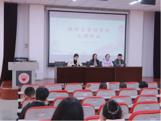 经济与管理学院于10月16日、18日举行了“先锋讲坛”主题活动。学院党委书记闫新,学工办副主任张志卿、团委副书记杨慧瑶、辅导员吴明泉出席此次活动,全院各年级同学报名参加。