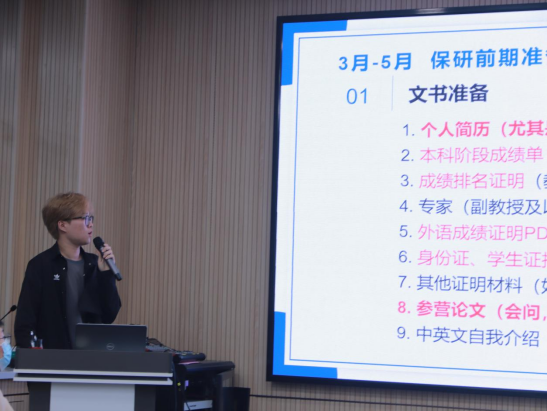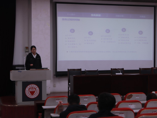 此次活动由国际经济与贸易、工程管理、会计学和物流管理专业成功保研的同学进行分享,从保研流程的梳理、申请材料的准备,到面试技巧的传授、科研经历的积累,同学们在交流中汲取经验,明确了目标,增强了信心。