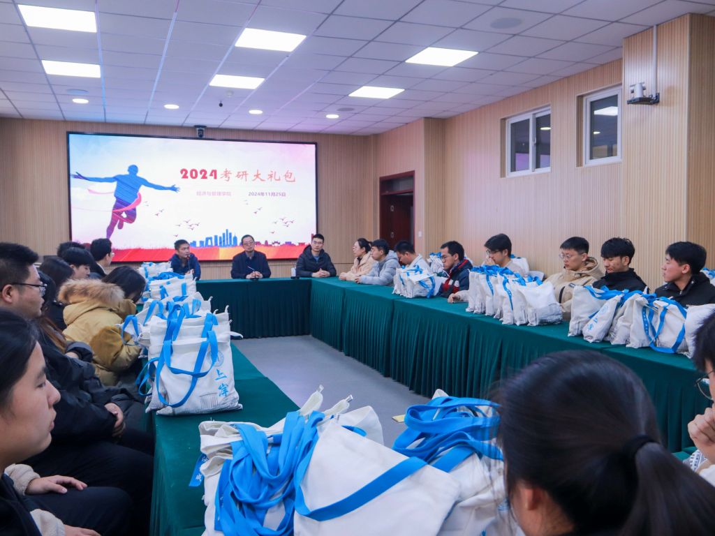 11月25日,经济与管理学院于学院229会议室召开考研学生座谈会,并为2025届考研学生发放考研大礼包。自2017年起,经济与管理学院已经连续8年为考研学生发放考研大礼包。