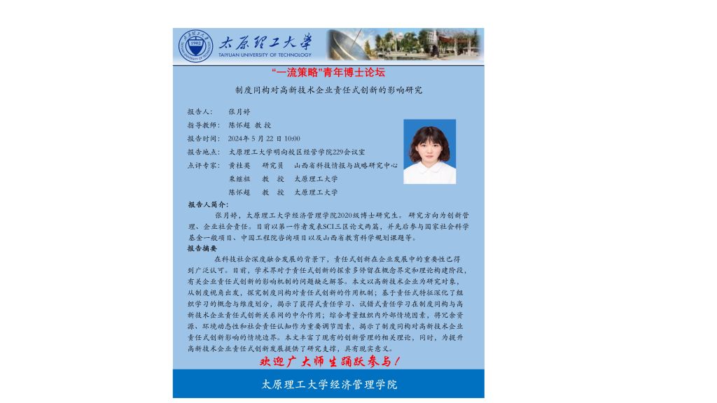“一流策略”青年博士论坛:制度同构对高新技术企业责任式创新的影响研究