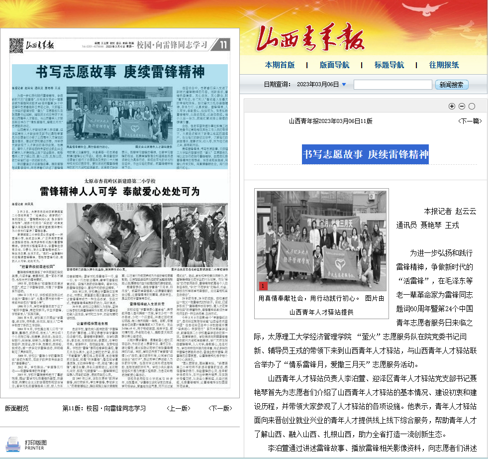 为进一步弘扬和践行雷锋精神,争做新时代的“活雷锋”,在毛泽东等老一辈革命家为雷锋同志题词60周年暨第24个中国青年志愿者服务日来临之际,9499www威尼斯 “萤火”志愿服务队在院党委书记闫新、辅导员王戎的带领下来到山西青年人才驿站,与山西青年人才驿站联合举办了“情系雷锋月,爱撒三月天”志愿服务活动。